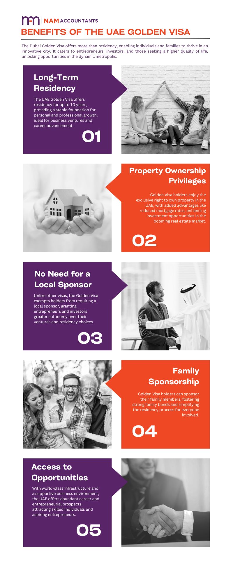 - No Local Sponsor Needed: Unlike other visas, the Golden Visa exempts holders from requiring a local sponsor, granting entrepreneurs and investors greater autonomy over their ventures and residency choices.