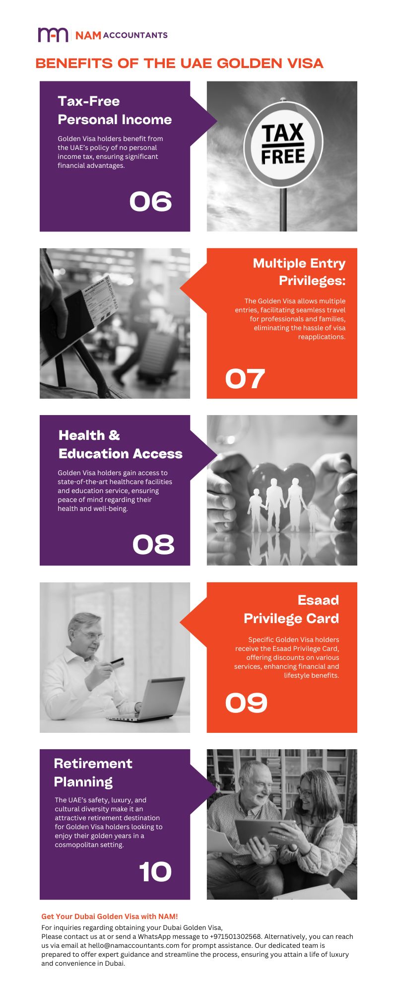 - Retirement Planning: The UAE’s safety, luxury, and cultural diversity make it an attractive retirement destination for Golden Visa holders looking to enjoy their golden years in a cosmopolitan setting.